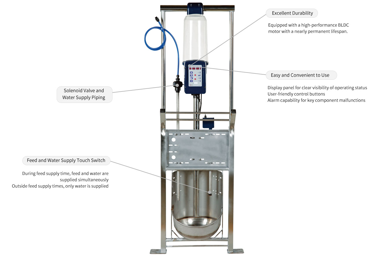 - Every time the sow activates the feed trigger, a set amount of water is simultaneously supplied along with the feed. Sows prefer this moist feed, which promotes optimal consumption.